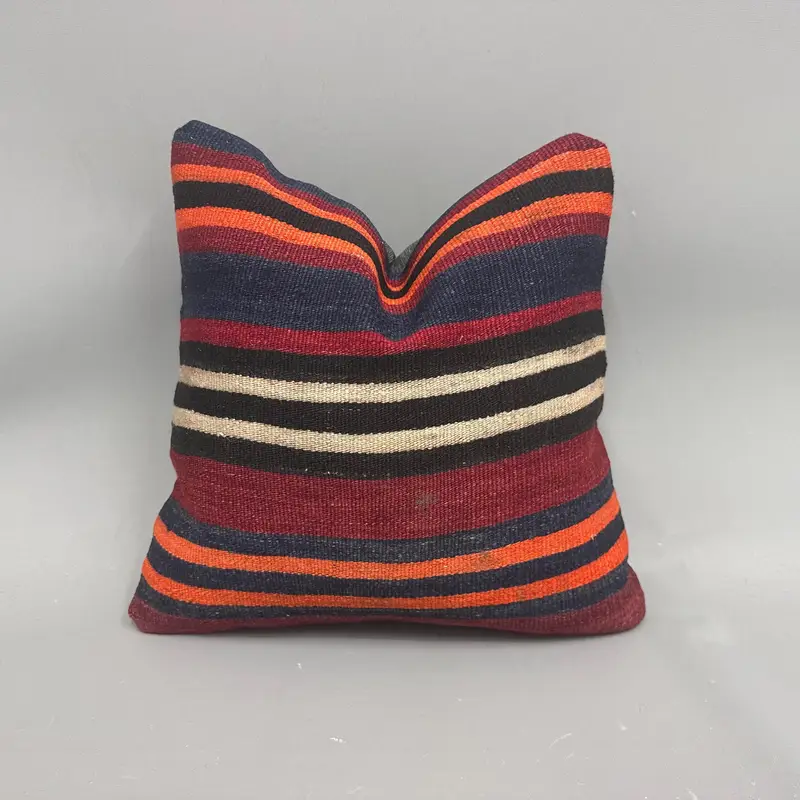 Handgewebtes gestreiftes Kissen in Orange und Rot, Vintage-Kelim-Wurfkissen
