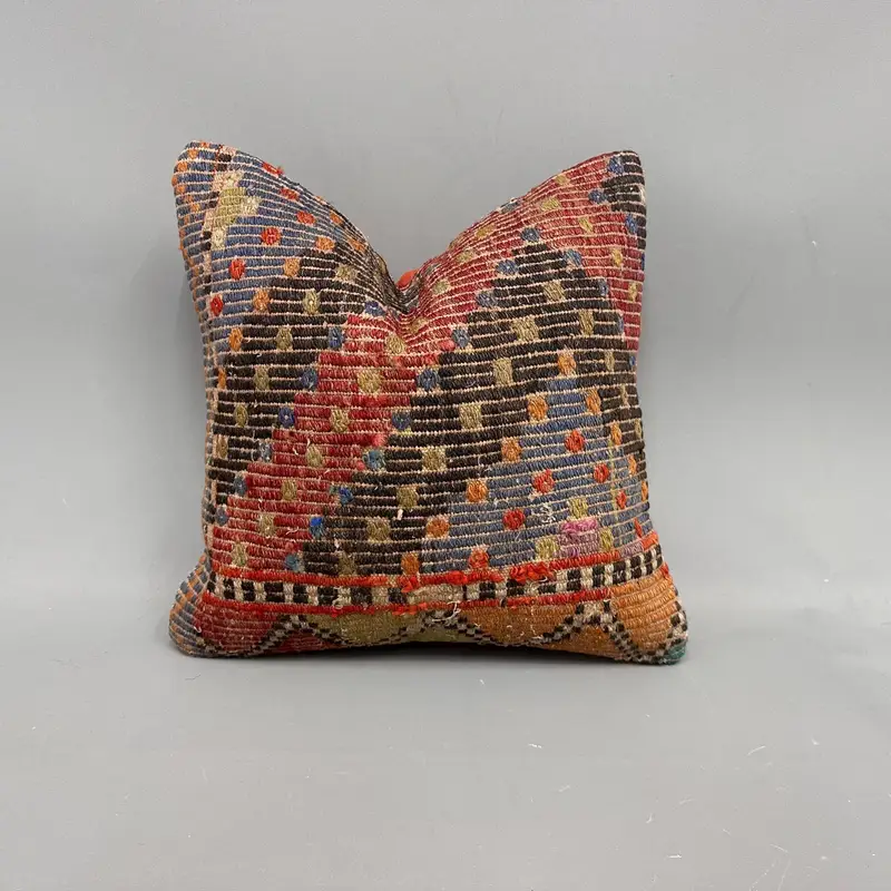 Rot & Lila besticktes Wurfkissen, 16x16 Vintage Kissen