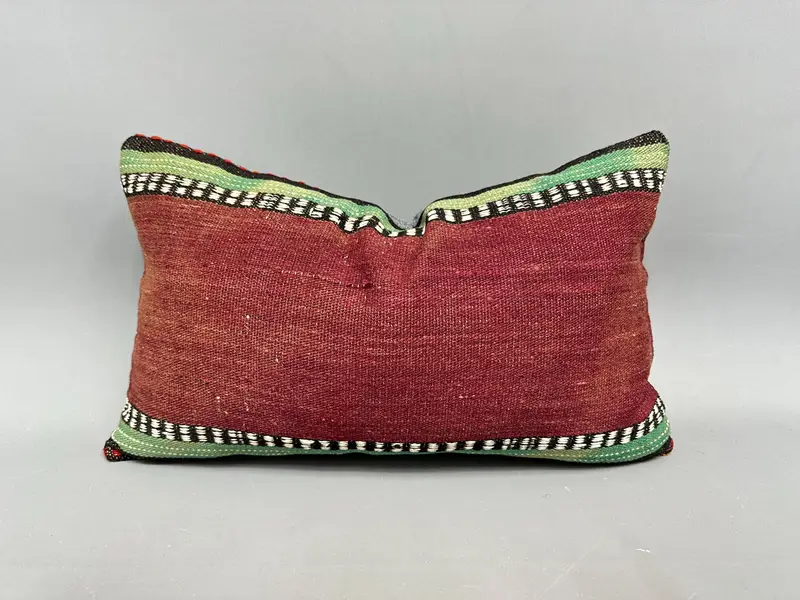 Grün-rot gestreiftes Leinen-Wurfkissen, Vintage-gesticktes Kissen