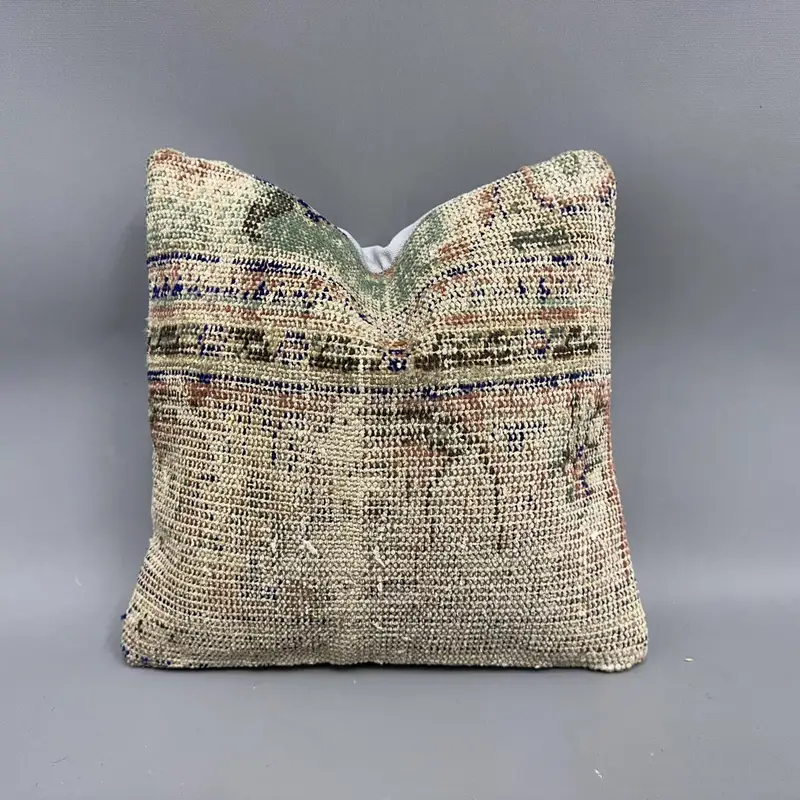 Handgewebter südwestlicher Kelim, 14x14 Vintage-Wurfkissen, Grün und Beige