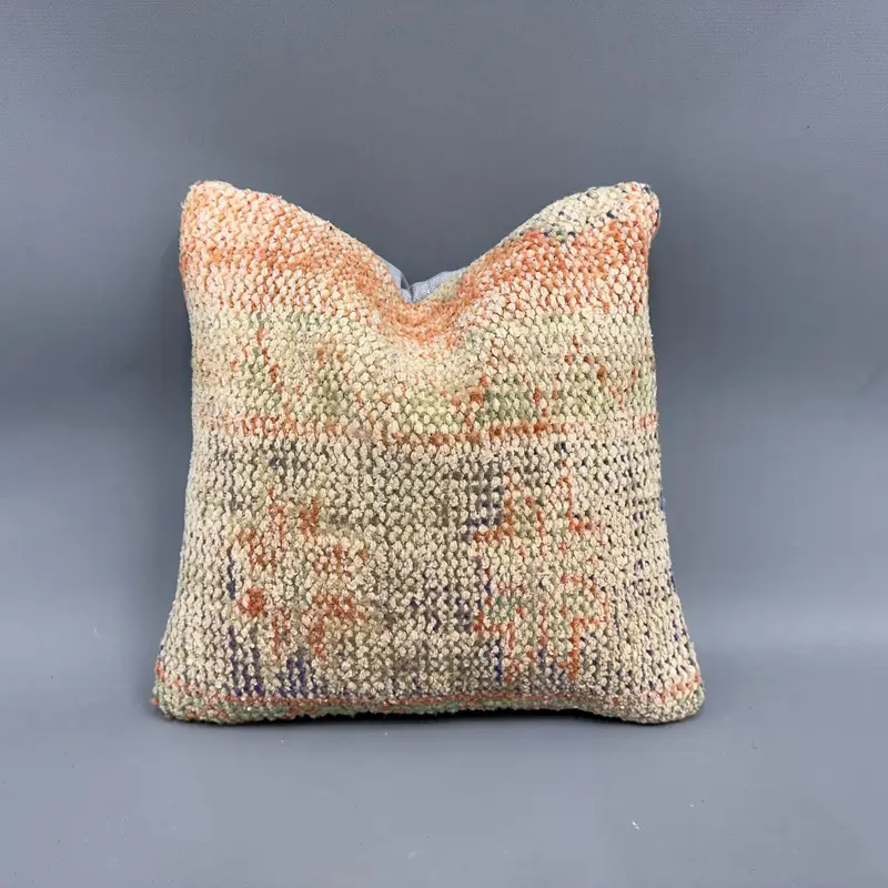 Orange & grünes Southwestern Kissen, Vintage Kelim Kissen