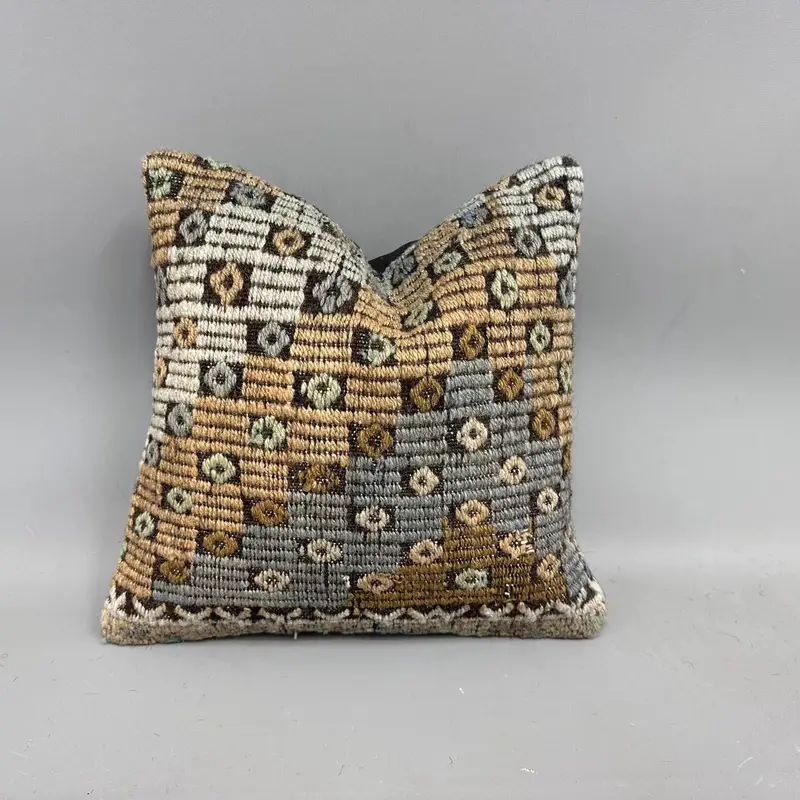 Grau & Orange besticktes Wurfkissen, handgemachtes Kelimkissen