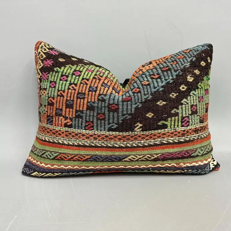 Blaues und braunes südwestliches Kelim-Wurfkissen, Vintage-Kissen im Format 20x28