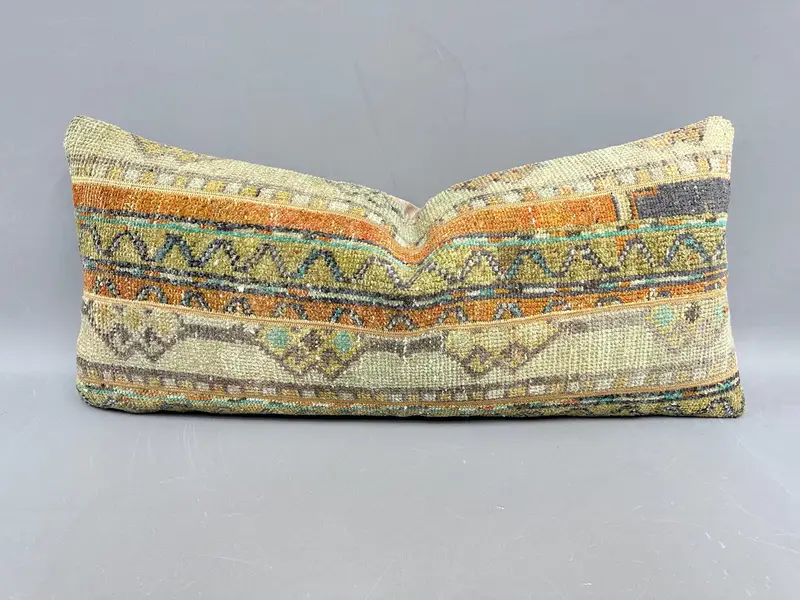 Orange & grünes Patchwork-Wurfkissen, handgemachtes Vintage-Rechteckkissen