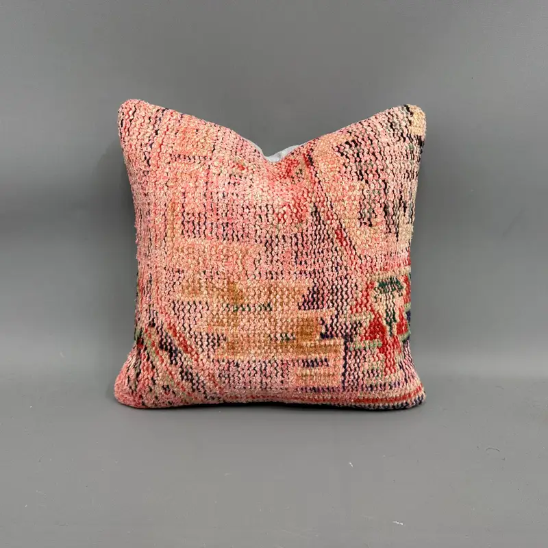 Rot & Orange besticktes Wurfkissen, Vintage Kelimkissen