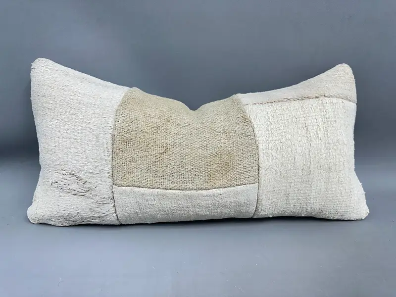 Handgefertigtes Patchwork-Wurfkissen in Beige und Weiß, Vintage-gesticktes Kissen