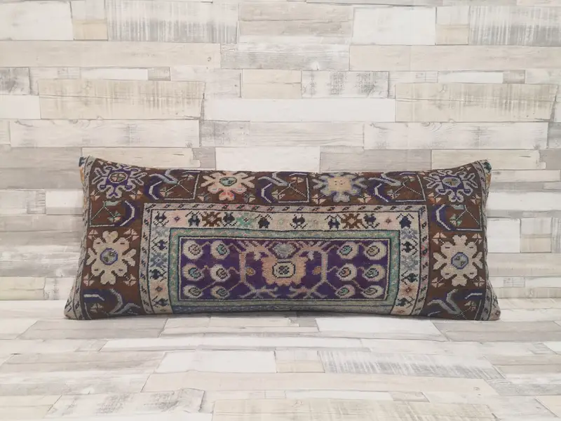 Handgefertigtes Wollkissen, 40x16 Zoll geometrisches Bronze- und Braunkissen