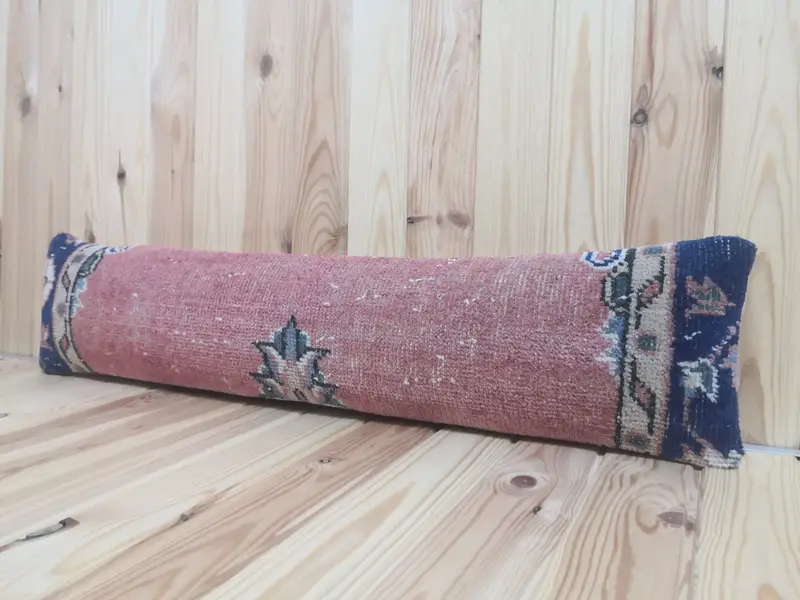 Rechteckiges geometrisches Wollkissen in Rot und Bronze, handgefertigtes Vintage-Kissen