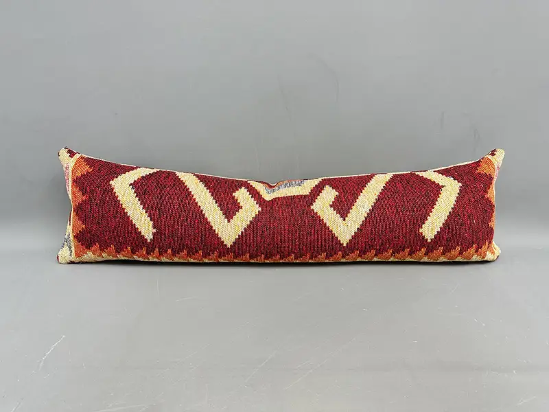 Rotes südwestliches Wurfkissen mit Vintage-Gelb-Akzenten, besticktes Kissen