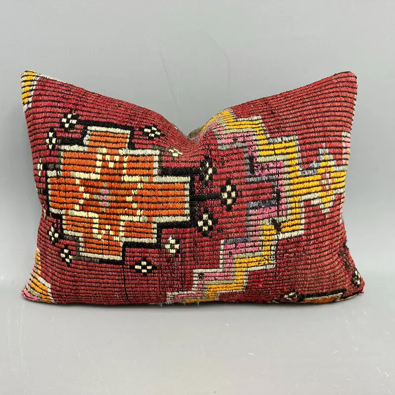 Rotes südwestliches Kelim-Wurfkissen, 20x28 Vintage besticktes Kissen