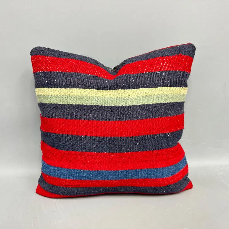 Rot & Bronze gestreiftes Wurfkissen, 22x22 Vintage Kissen