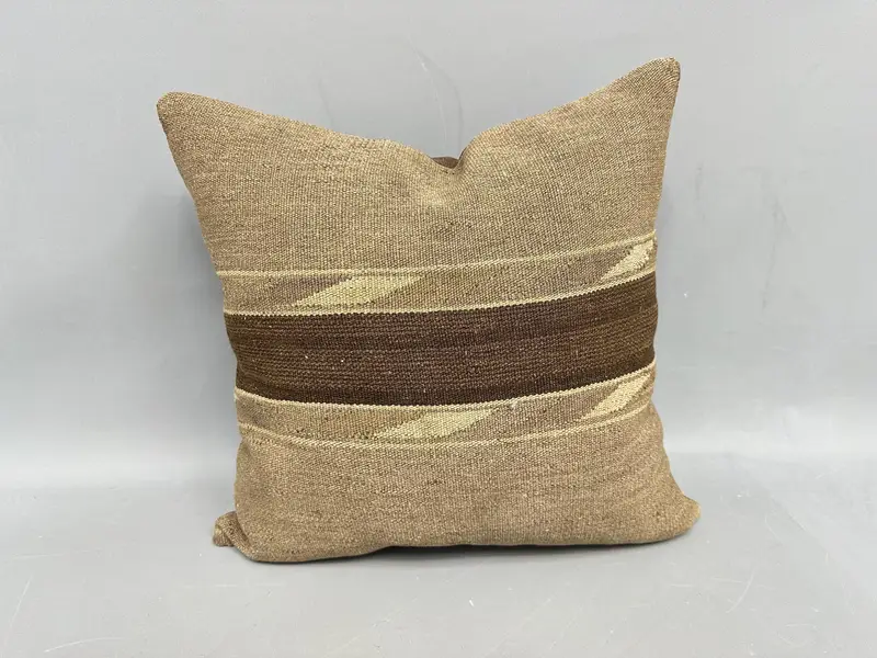 Beige & Braunes Vintage Patchwork Kissen, handgemachtes Leinenkissen