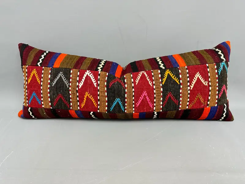 Rot-braunes Patchwork-Wurfkissen, 16x42 besticktes Kissen