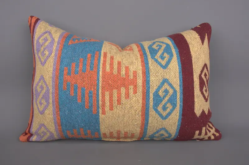 Handgefertigtes geometrisches Kissen in Braun und Orange, Vintage-Leinenkissen