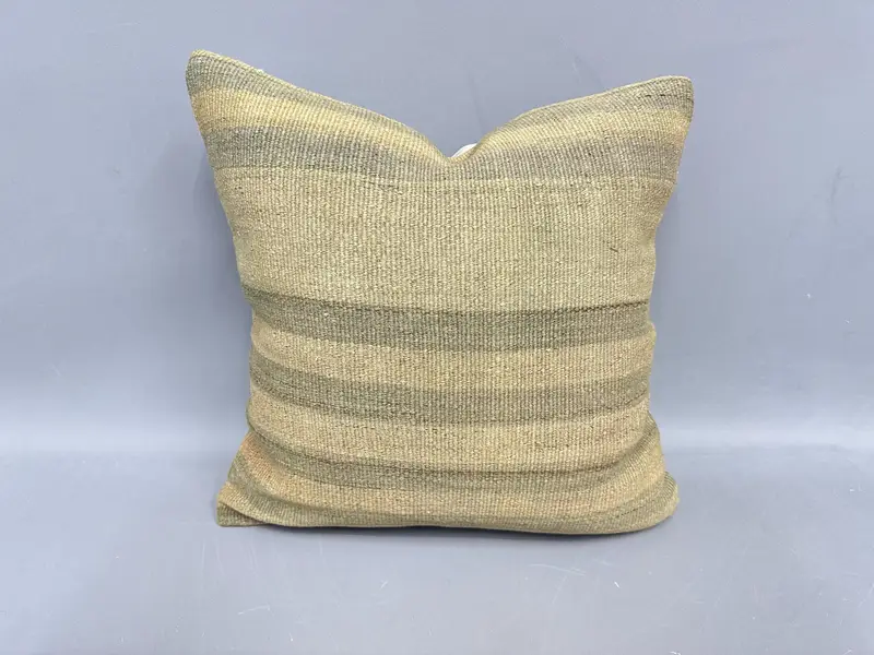 Beige & braun gestreiftes Wurfkissen, Vintage Kelimkissen