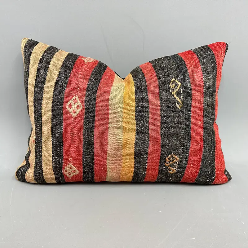 Rot-schwarz gestreiftes Kelim-Wurfkissen, Vintage-Rechteckkissen