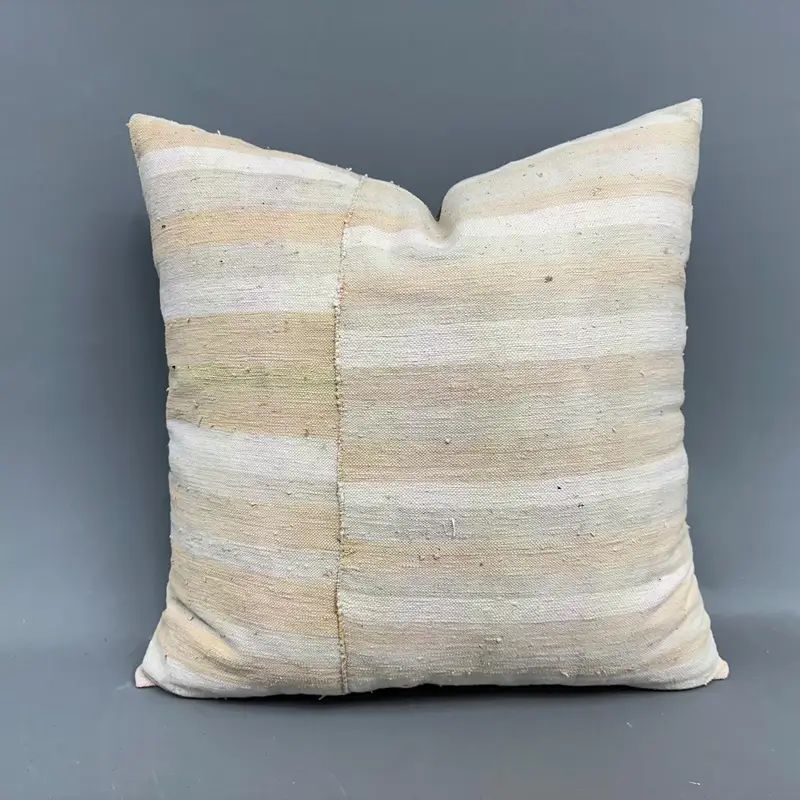 Patchwork-Wurfkissen in Beige und Bronze, Vintage-Kelimkissen