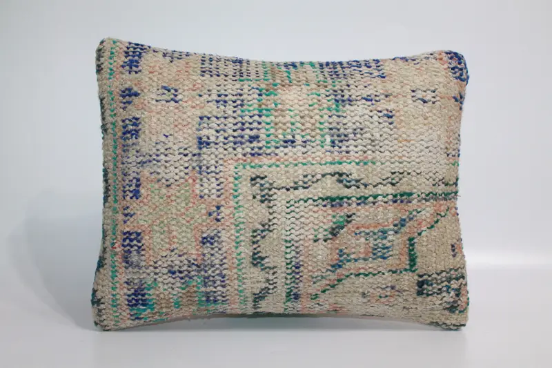 Handgewebter türkischer Wollteppich-Kissenbezug, besticktes Wurfkissen
