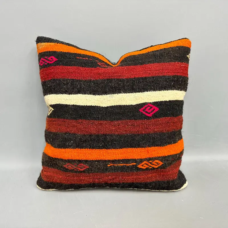 Rot & Orange gestreiftes Wurfkissen, besticktes Leinenkissen