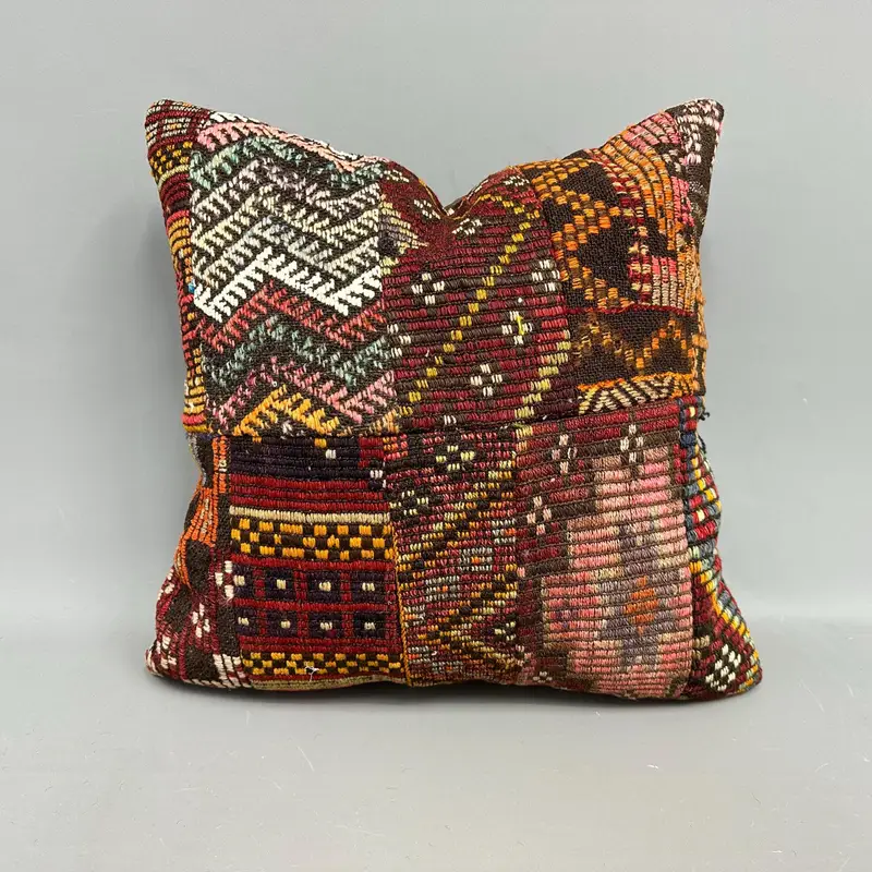Handgewebtes Kelim-Wurfkissen, 24x24 besticktes Kissen