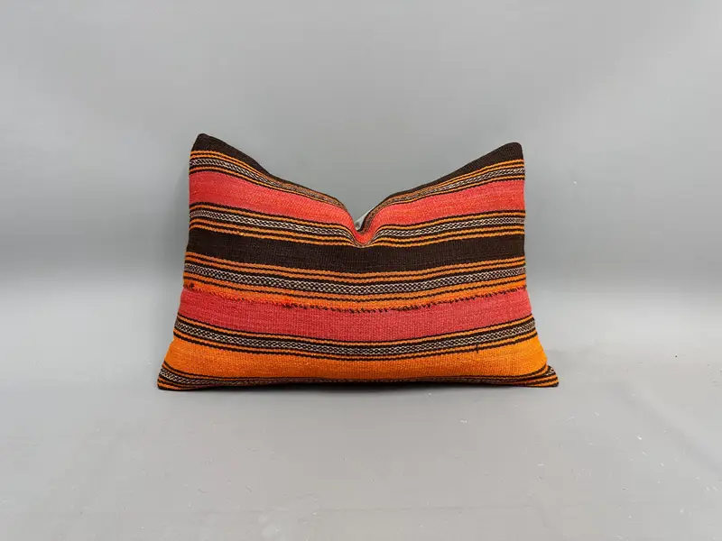 Handgewebter türkischer Kelim-Kissenbezug, 16x24 Zoll besticktes Wurfkissen