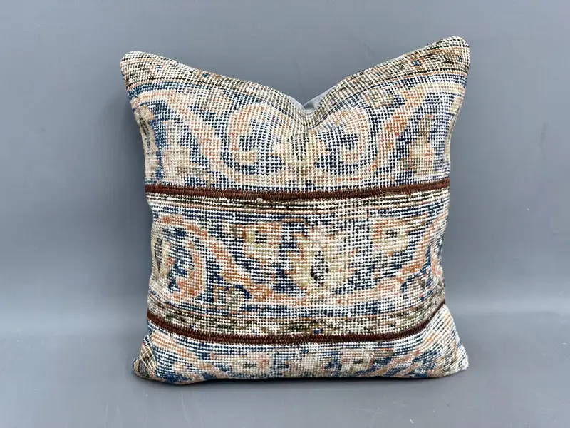 Blau & Beige besticktes Wurfkissen, Vintage Patchwork Wurfkissen