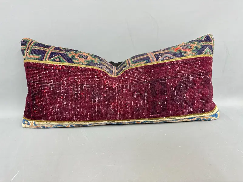 Lila & Bronze Patchwork Kelim Kissen, 16x36 handgemachtes Wurfkissen