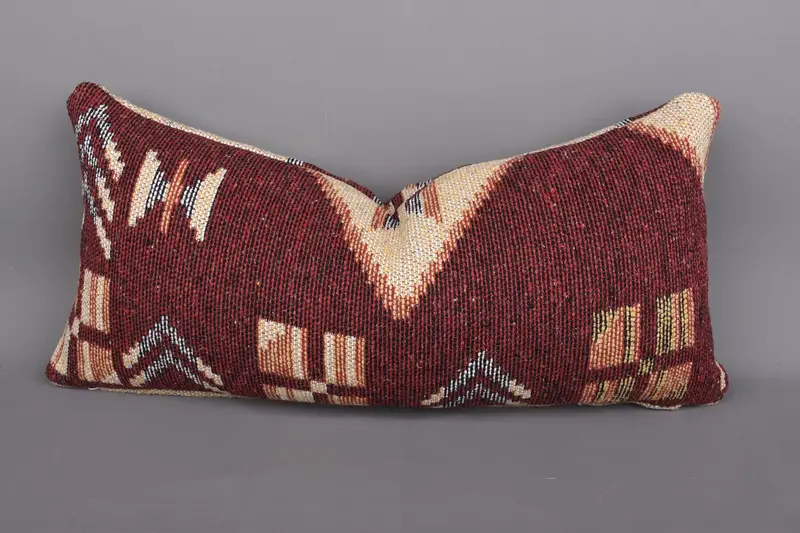 Rotes geometrisches Leinenkissen, Vintage besticktes Kissen