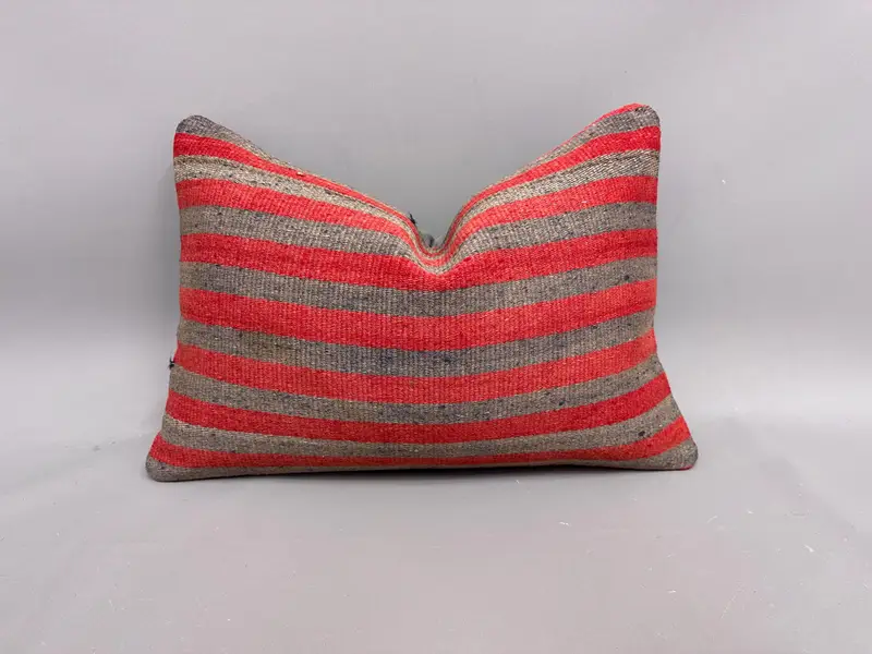 Rot-braun gestreiftes Kissen, Vintage Kelimkissen