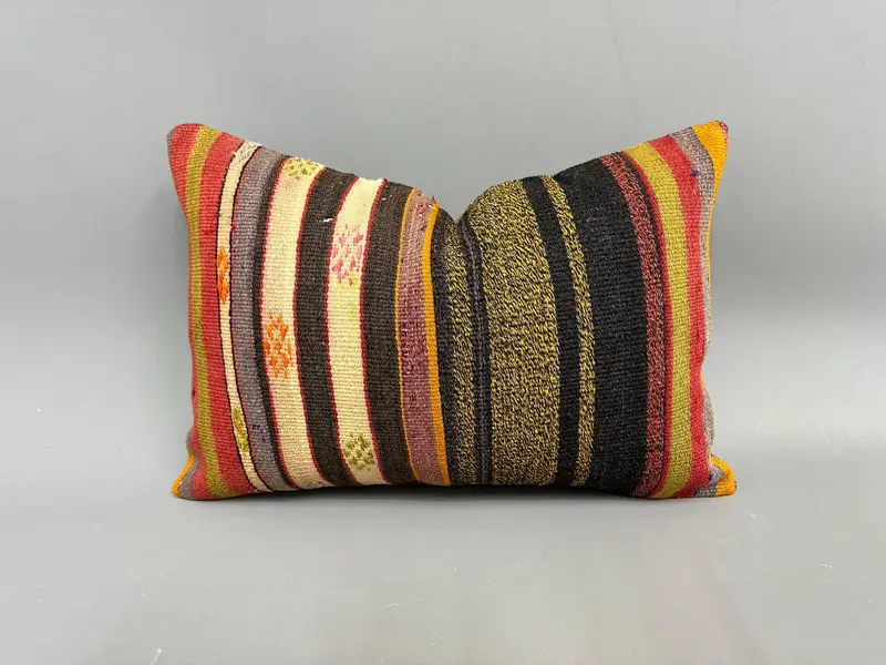 Handgefertigtes braun & grün gestreiftes Kissen, Vintage Leinenkissen