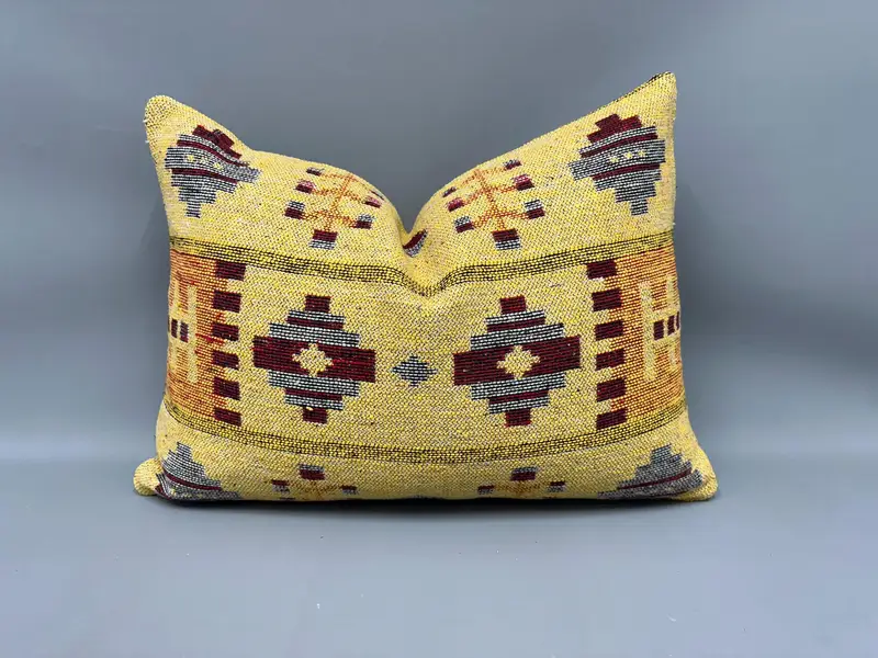 Geometrisches Wurfkissen in Rot und Beige, 20 x 28 Vintage-Kissen