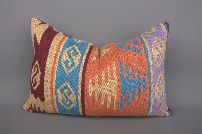 Handgefertigtes geometrisches Kissen in Orange und Bronze, Vintage-Leinenkissen