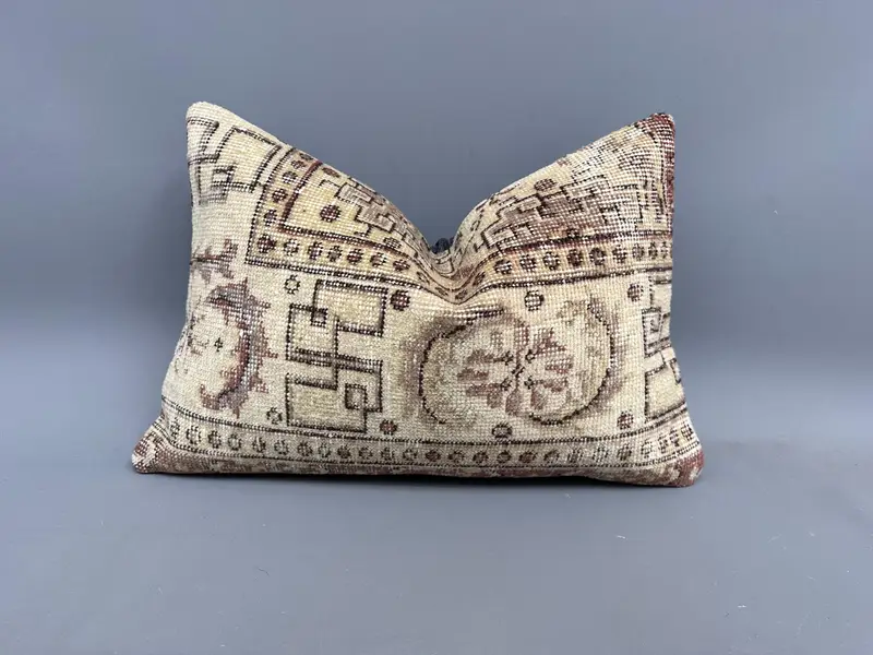 Beige & braun floral besticktes Wurfkissen, Vintage Kelimkissen