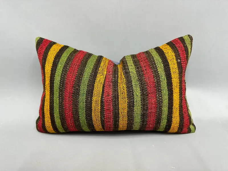 Handgewebtes Kelim-Teppichkissen, 12x20 Vintage-Wurfkissen