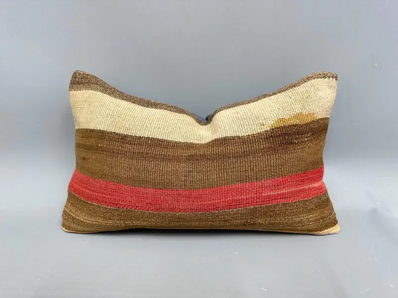 Rot-braun gestreiftes Kissen, Vintage besticktes Kissen