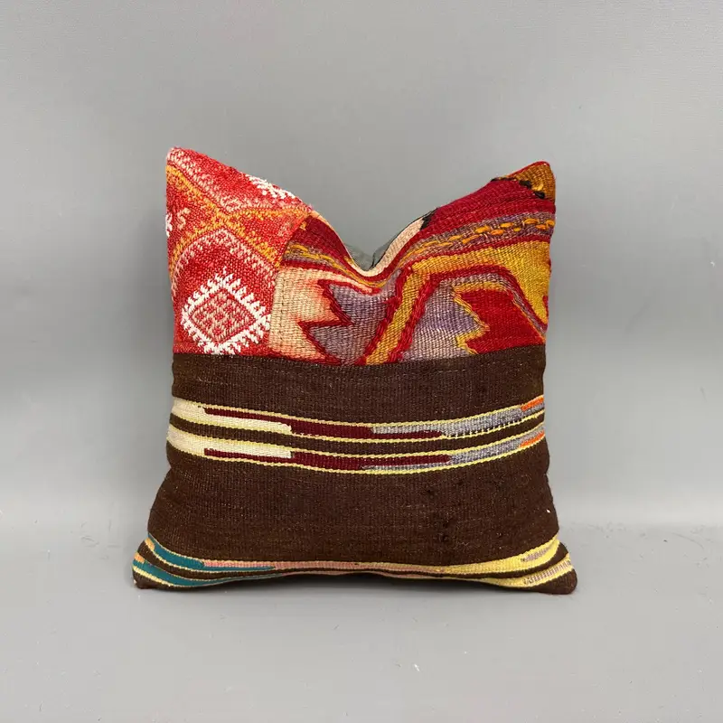 Handgewebtes Kelim-Wurfkissen, Vintage-Patchwork-Kissen