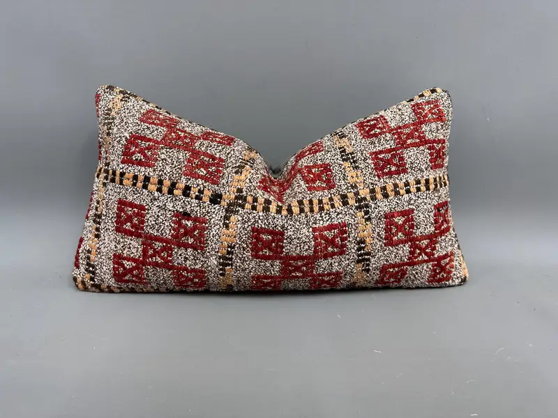Beige & rotes südwestliches Kelim-Wurfkissen, handgefertigtes Leinenkissen