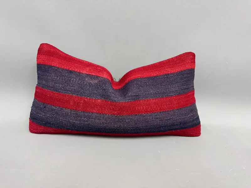 Rot & Bronze gestreiftes Kissen, Vintage Kelim Kissen