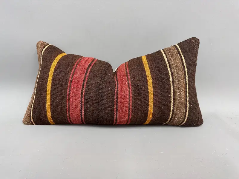 Rot gestreiftes Kelimkissen, 12x24 handgemachtes Wurfkissen