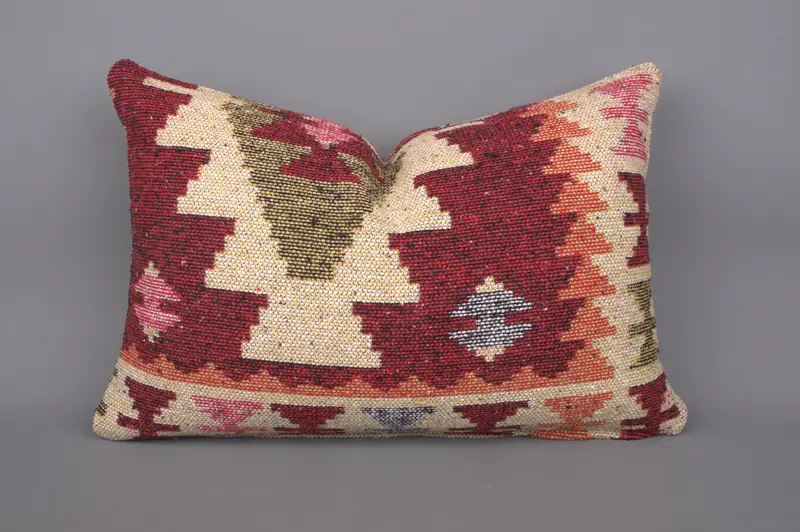 Rot & Beige besticktes Kissen, 16x24 handgemachtes Wurfkissen
