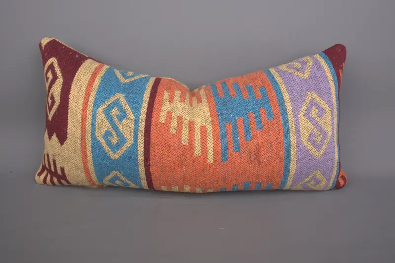 Orange & Rot besticktes Kelim Kissen, handgemachtes Vintage Kissen