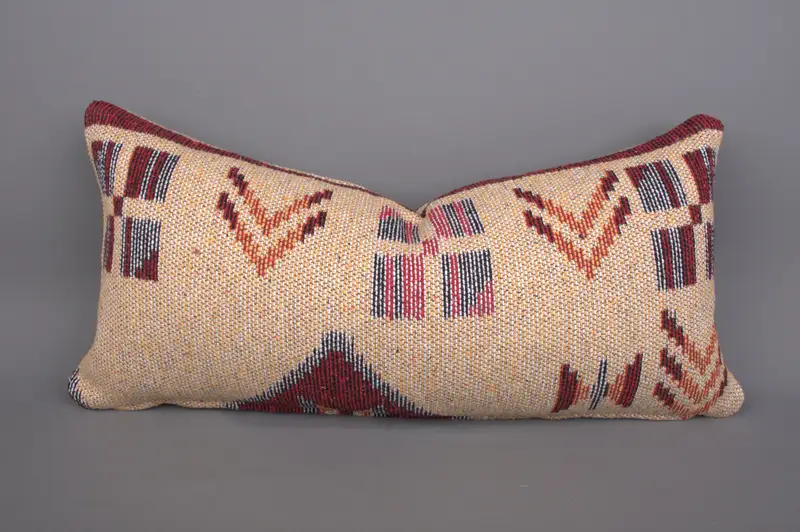 Beige-rotes Kelim-Wurfkissen, 12x24 besticktes Kissen