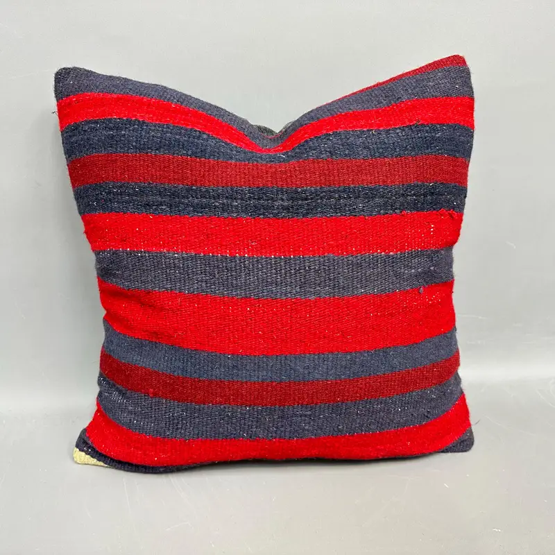 Rot gestreiftes Kelim-Wurfkissen, 22x22 Zoll Vintage-Kissen