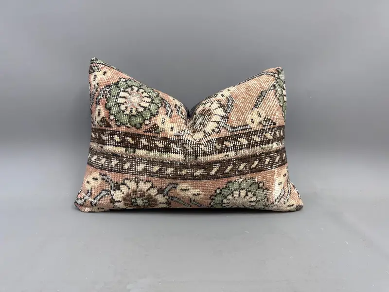 Orange & grünes Blumenkissen, Vintage besticktes Kissen
