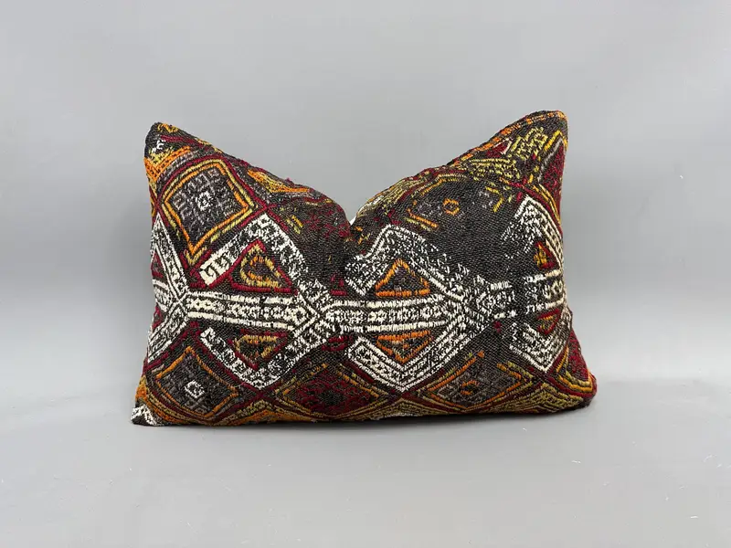Bestickter Kelim-Kissenbezug, 16 x 24 Zoll ethnisches Wurfkissen