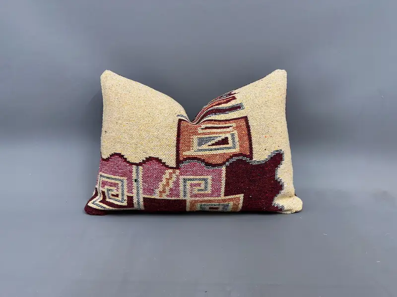 Braunes und rotes geometrisches Kissen, Vintage besticktes Kissen