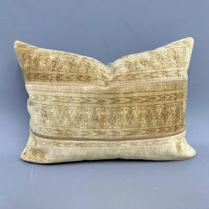 Beige & braunes Patchwork-Wurfkissen, Vintage-Kelimkissen