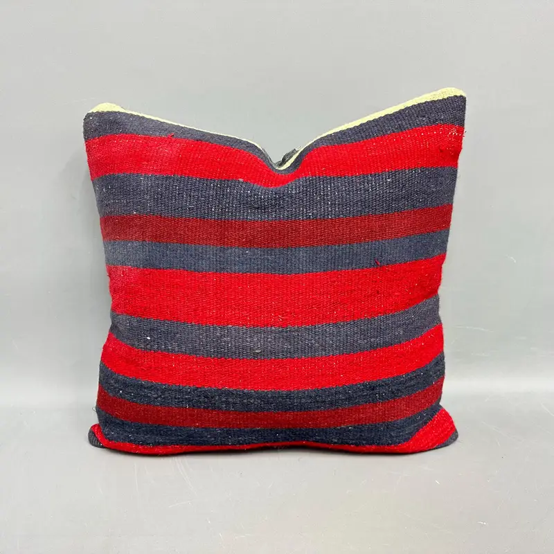 Rot gestreiftes Kelim-Wurfkissen, Vintage-Boho-Kissen