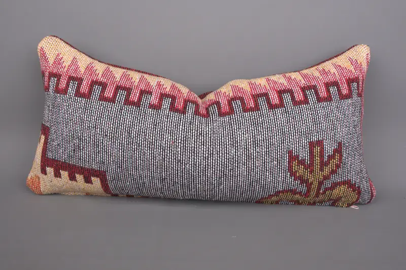 Blaues und grünes geometrisches Kissen, handgemachtes Vintage-Leinenkissen