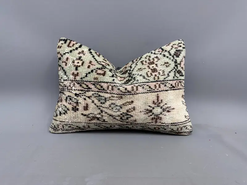 Handgewebtes rechteckiges Kelimkissen, Vintage-Wurfkissen in Grün und Beige